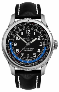 Designed with international travelers in mind, the Navitimer Aviator 8 B35 Automatic Unitime 43 offers world-time indication through an ingenious independent hour hand that is adjustable with the crown. Powering this COSC-certified chronometer is the reliable Breitling Manufacture Caliber B35. The remarkable dial is available in silver or black. The Navitimer Aviator 8 B35 Automatic Unitime 43 has a transparent sapphire caseback. The 43 mm steel case features a rotating bezel and comes on one of several strap options, including the Professional III steel bracelet.