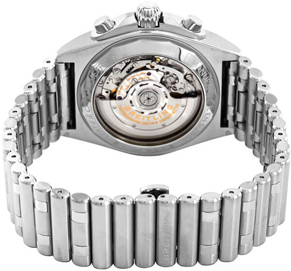 Breitling Chronomat B01 42 Men's Watch AB0134101G1A1. This 42mm watch features a brushed with polished stainless steel case and bracelet. The silver dial has index hour markers, a date window at 6 o'clock, chronograph, and tachymeter scale. It is powered by the Breitling Caliber 01 self-winding automatic COSC Chronometer certified movement with a 70 hour power reserve.
